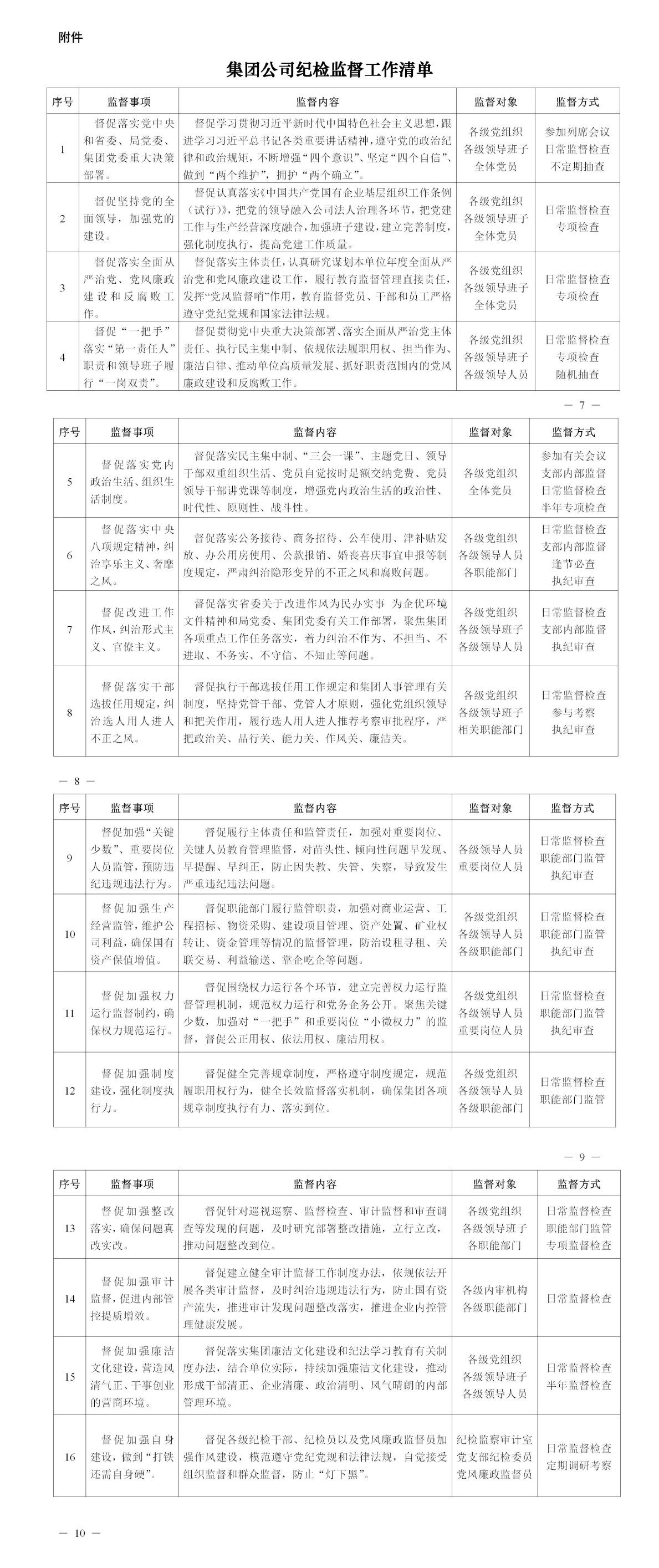 附件:集團(tuán)公司紀(jì)檢監(jiān)督工作清單