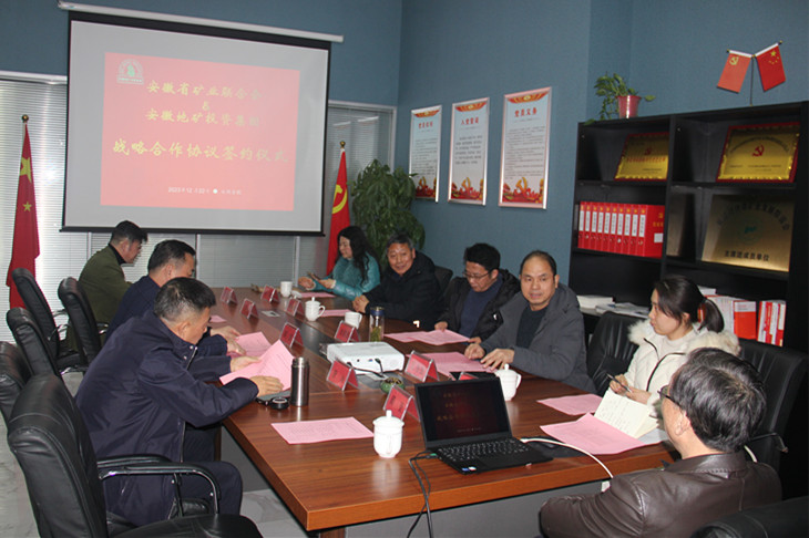 12月22日,集團(tuán)公司與安徽省礦業(yè)商會(huì)在合肥舉行戰(zhàn)略合作簽約儀式。省地礦局經(jīng)濟(jì)發(fā)展處處長(zhǎng)徐國(guó)愛(ài)出席儀式并講話,集團(tuán)公司董事長(zhǎng)、總經(jīng)理汪冬生與省礦業(yè)商會(huì)會(huì)長(zhǎng)鄧新代表雙方簽署戰(zhàn)略合作協(xié)議。